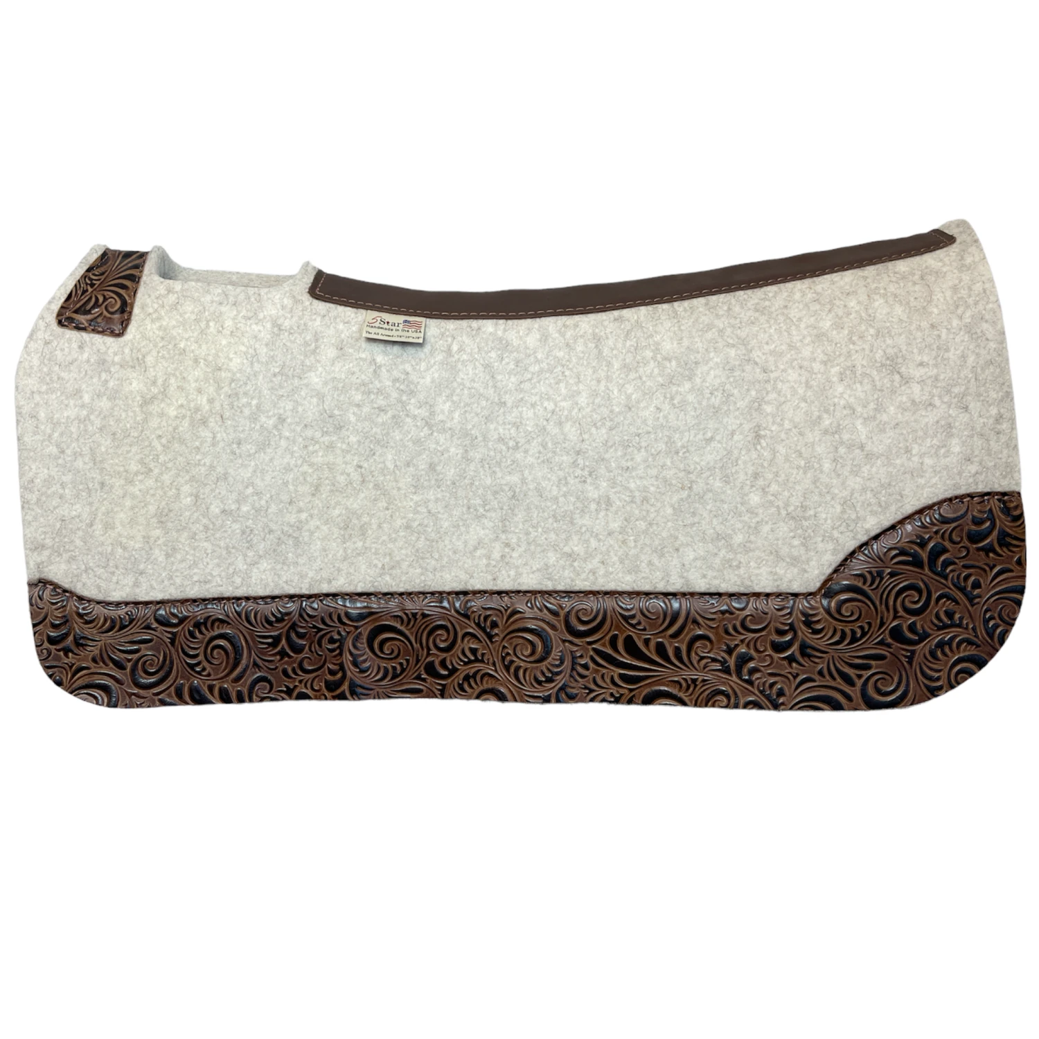 The All Around 5 Star Saddle Pad is made with 100% pure virgin wool felt that wicks away moisture, cleans up easily and stabilizes your saddle with limited cinching.Â