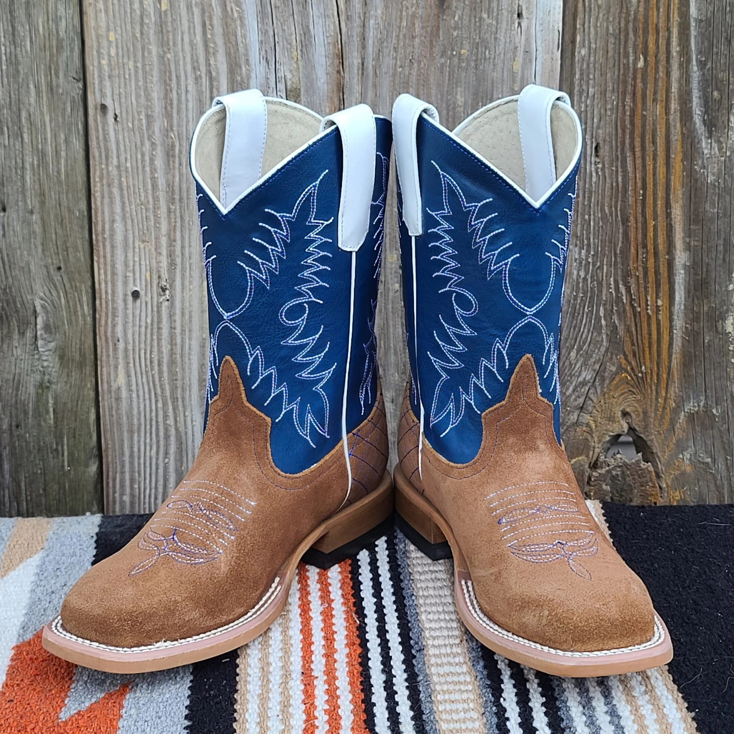 Let your cowkid look great in these ruff out leather boots by Anderson Bean.Â