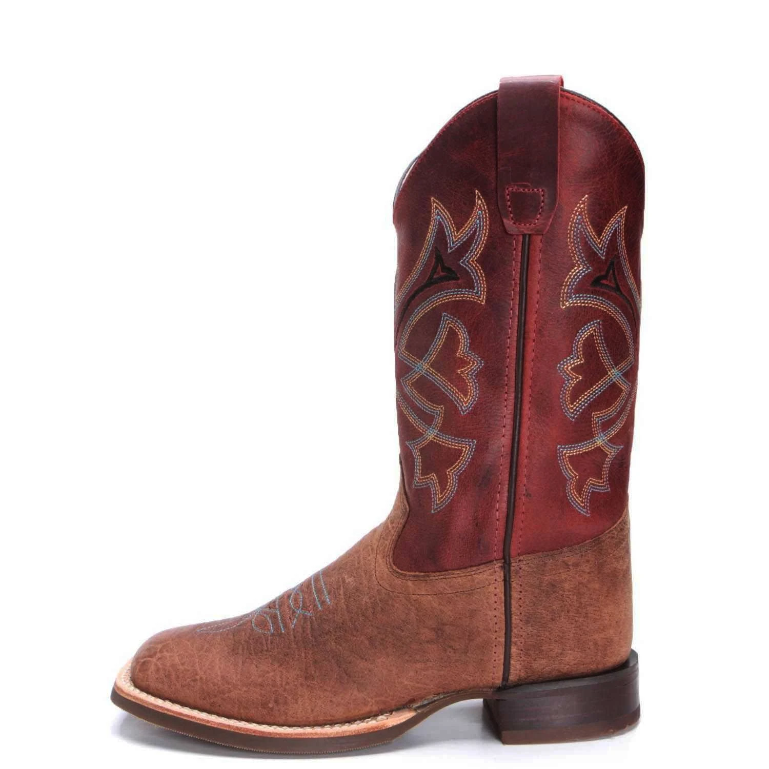 These boots will great for your rough and tough cowboys. They feature a distress brown foot with a rust colored shaft. Cushion insole will make them want to run and play all day long.