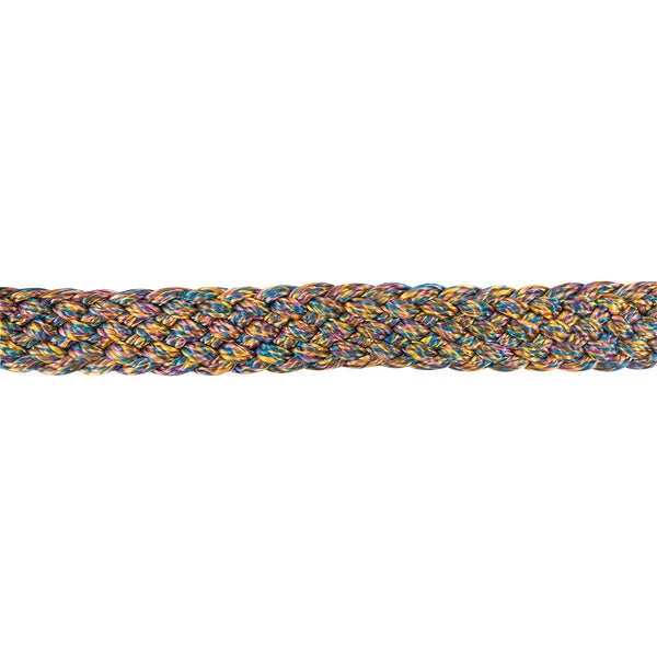 This Cashel Flat Braid rope halter features a stand out color scheme guarantee to pop on any color horse. The includes a matching 9′ lead braided into the halter.Â