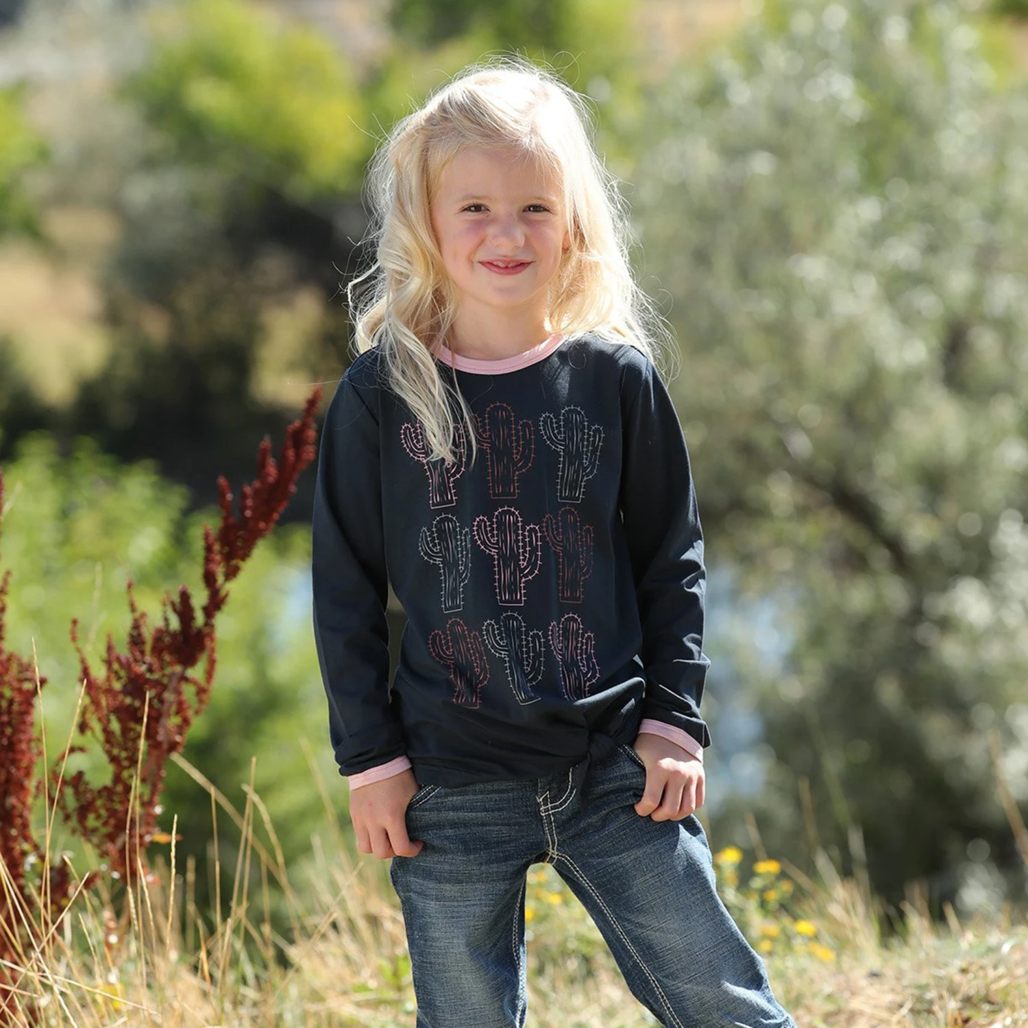 For the little girl that loves the desert this cactus shirt is perfect. Design details include an easy pullover style with round neck and trendy tie front.Â