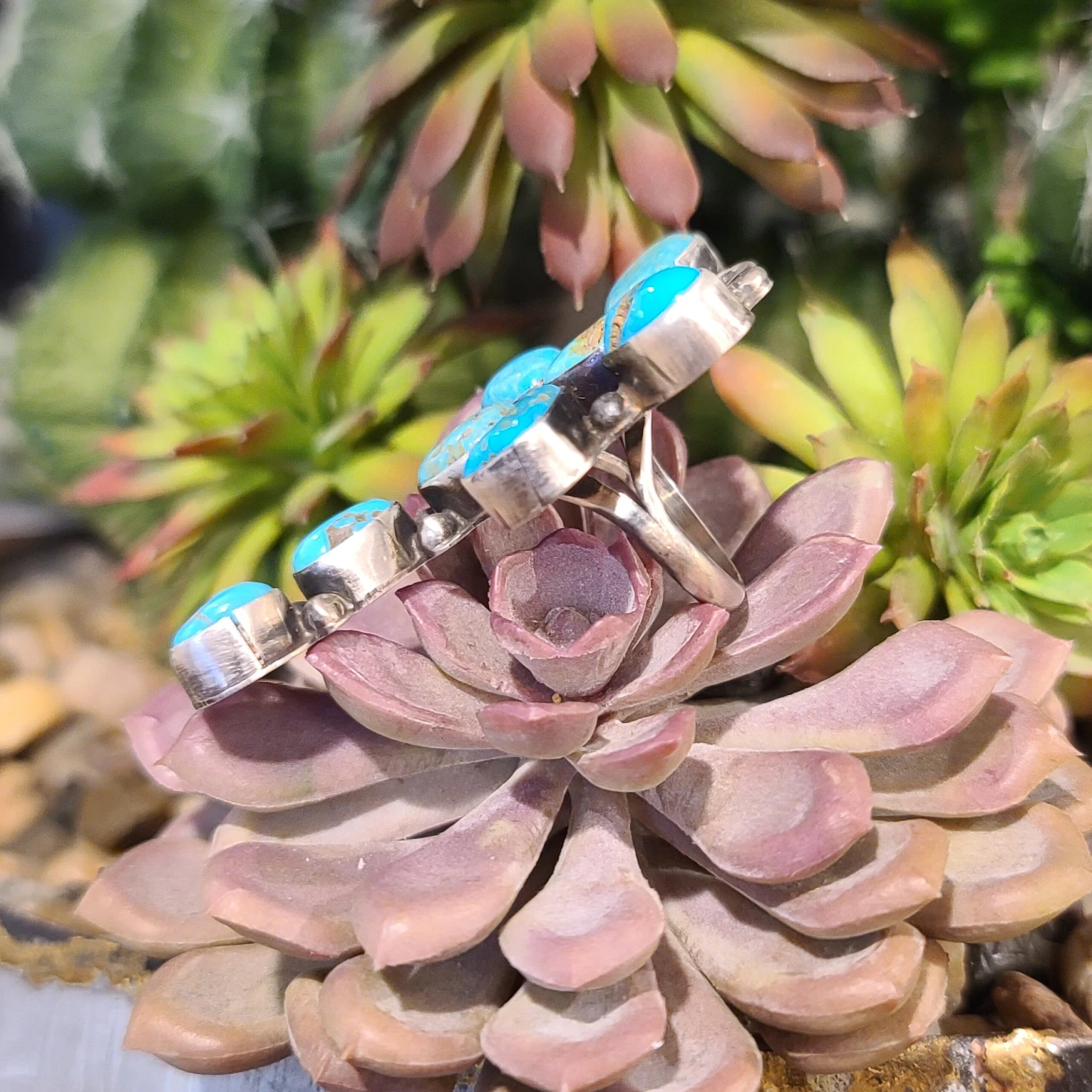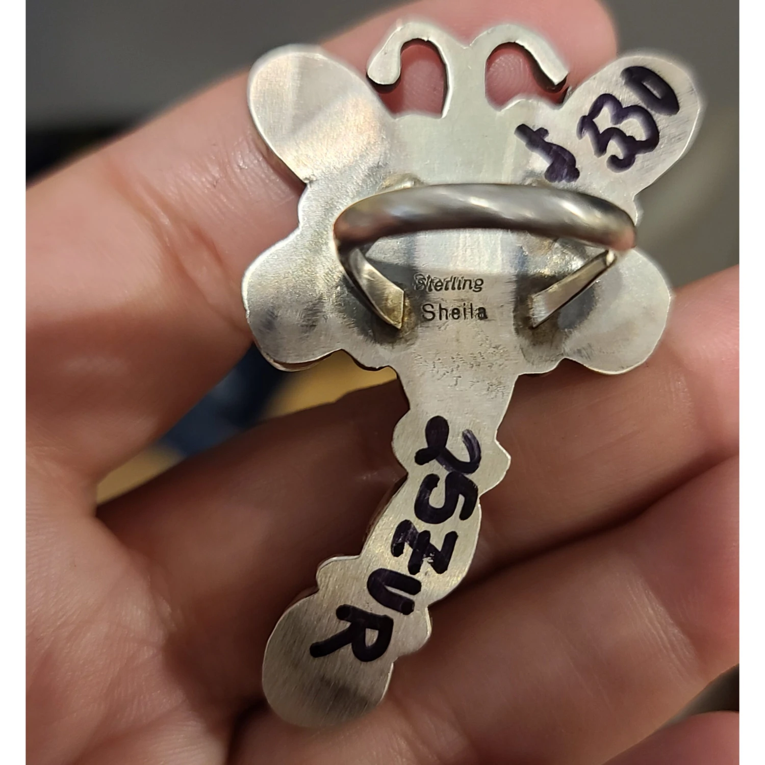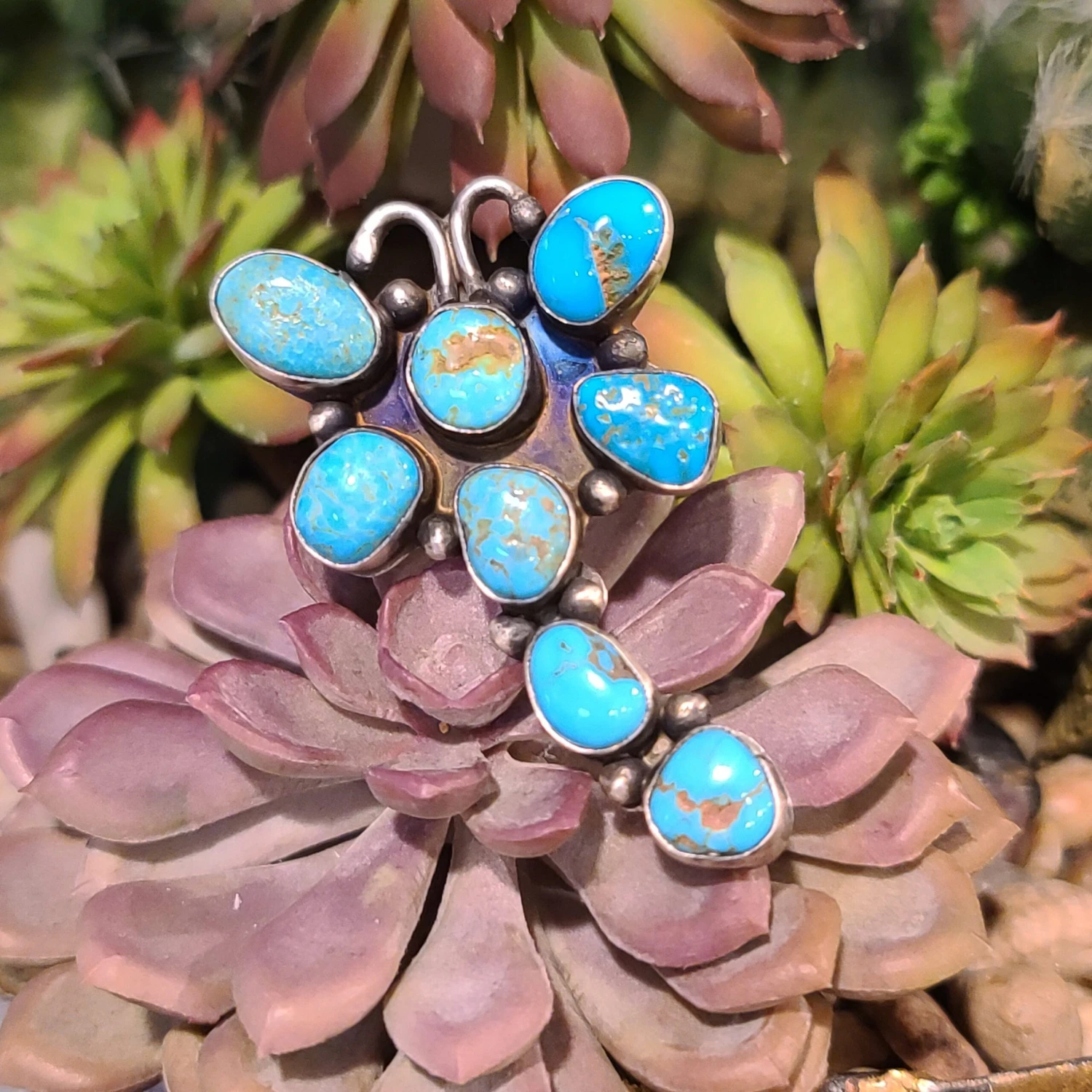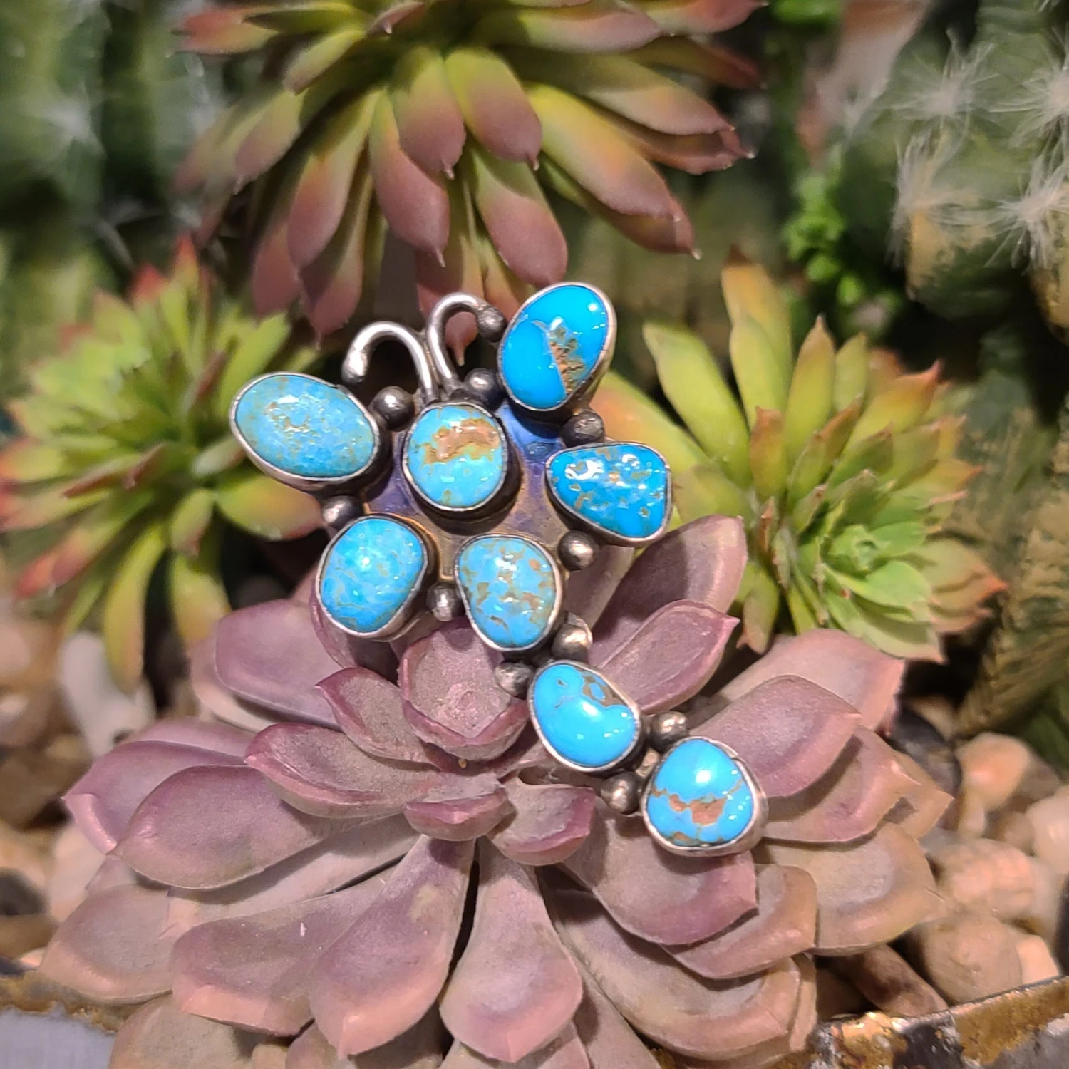 What a stunning dragonfly ring. The turquoise stones and size of this piece simply stand out. This ring is just over 2 inches in length.Â