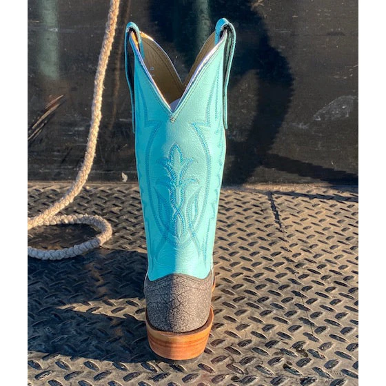 Stunning Grey Cape Buffalo boots from Fenoglio Boot Co. These boots are made for the punchy hard working cowgirl! They feature a beautiful Turquoise Shaft. These boots feature the ranch tough outsole so they will be sure to last and stand up to long day in the saddle and on the ranch! Handmade in Nacona, TX USA!Â