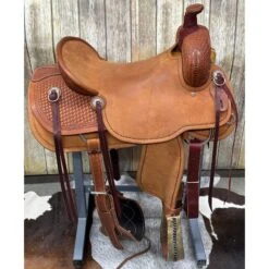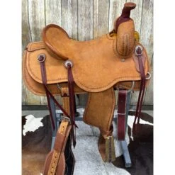Talk about a well put together saddle. HR Saddlery really outdid themselves with this 17 Inch ranch cutter. The amount of detail that was put into the tooling of this saddle is insane! Not only does it have basket weave through out the saddle it also has a snake border that just puts it over the top. This is one you do not want to miss out on.Â