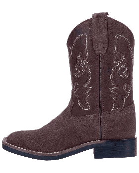 Hey little cowpoke, check out these boots! These boys Davie pull on Boots from Dan Post Boots have a have a stockman heel, rubber outsole, 9″ shaft, cushion comfort insole and square toe. Leather.