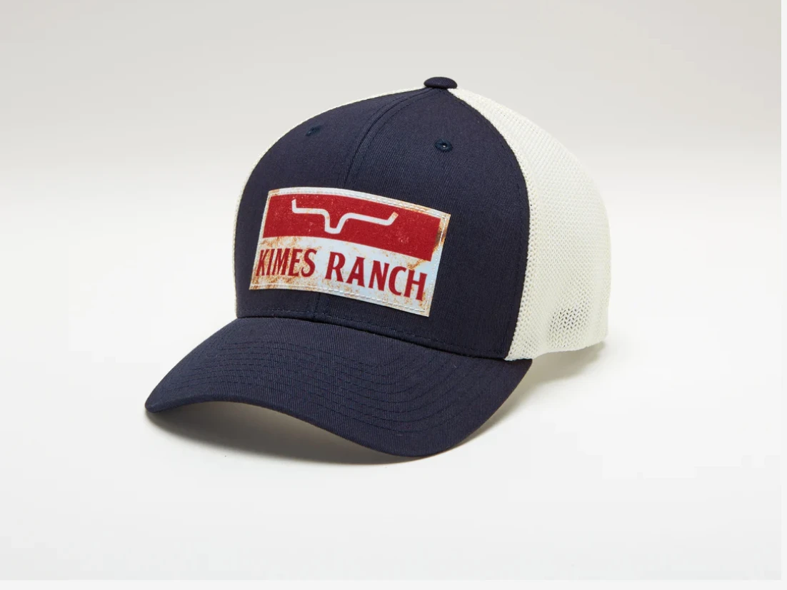 Kimes Ranch 110 fire ex trucker is available in four color options. Sublimated print distressed and vintage printed Kimes Ranch patch. Cotton twill front and poly mesh back with adjustable backstrap for just the right fit.