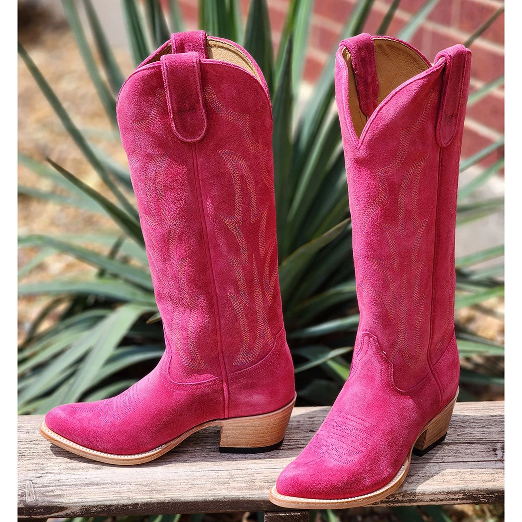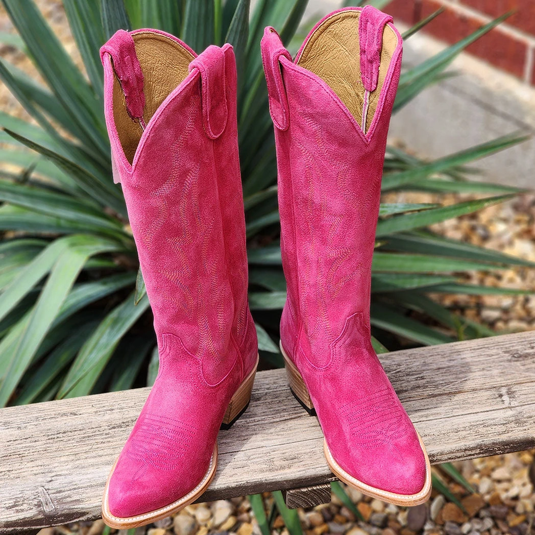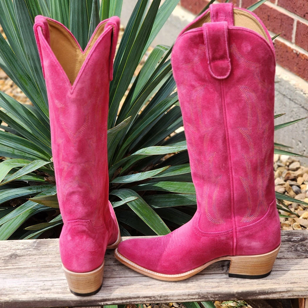 Can you say eye catching? These beautiful hot pink suede boots are so fun, not to mention feel like butter. Wear them with your favorite dress or jeans for a great look.Â