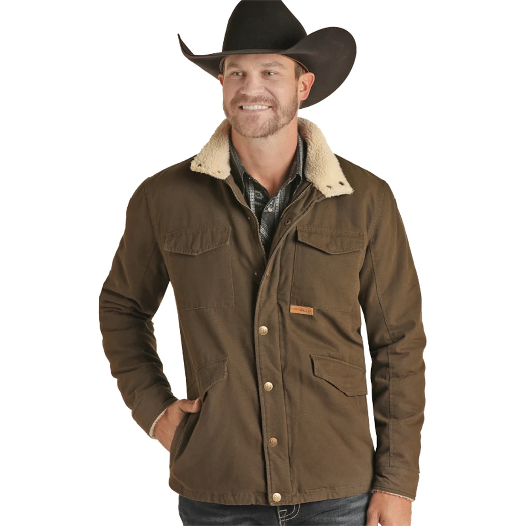 This Brushed Canvas Olive Jacket from Panhandle is the perfect coat to keep you warm while working on the ranch.