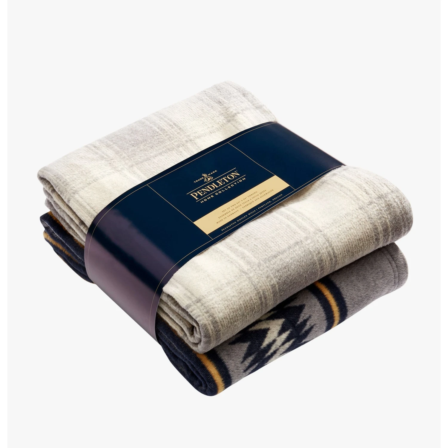 A twin-pack of cotton throws, specially loomed for us in Germany. Woven of mostly cotton, with acrylic for added softness, these throws are ideal for warmer weather—and are machine washable for ease of care. Set of two throws incudes one plaid, one stripe.