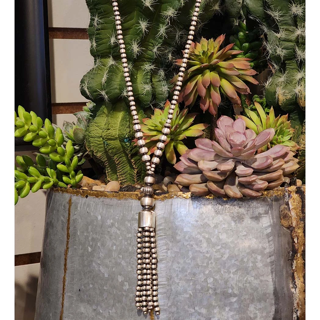This cute sterling silver pearl necklace has a fun tassel look to it. Sure to dress up any outfit.Â