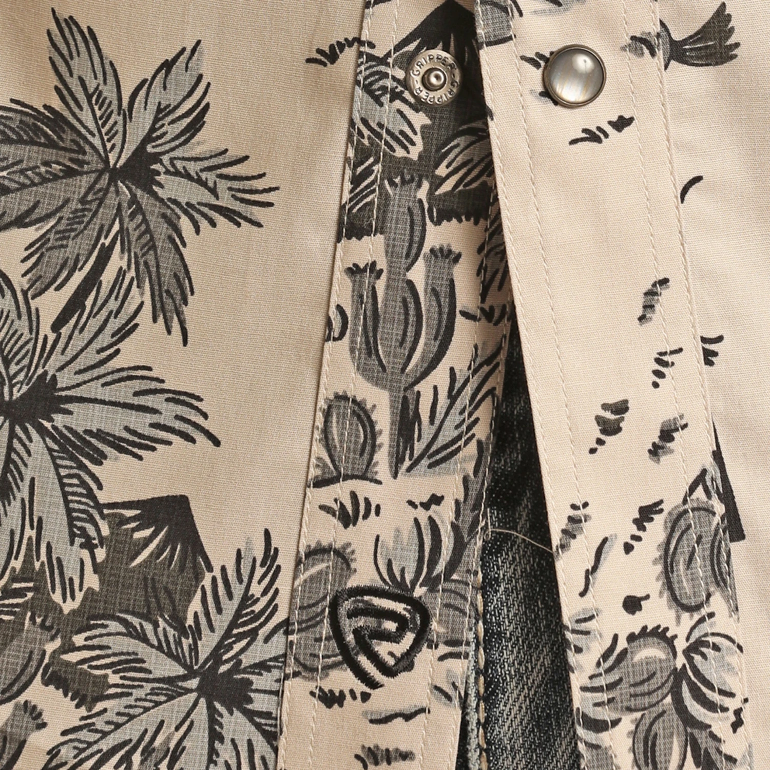 Hit the town in this stylish Rock & Roll brand Men’s shirt with the cream & charcoal tropical cowboy pattern!