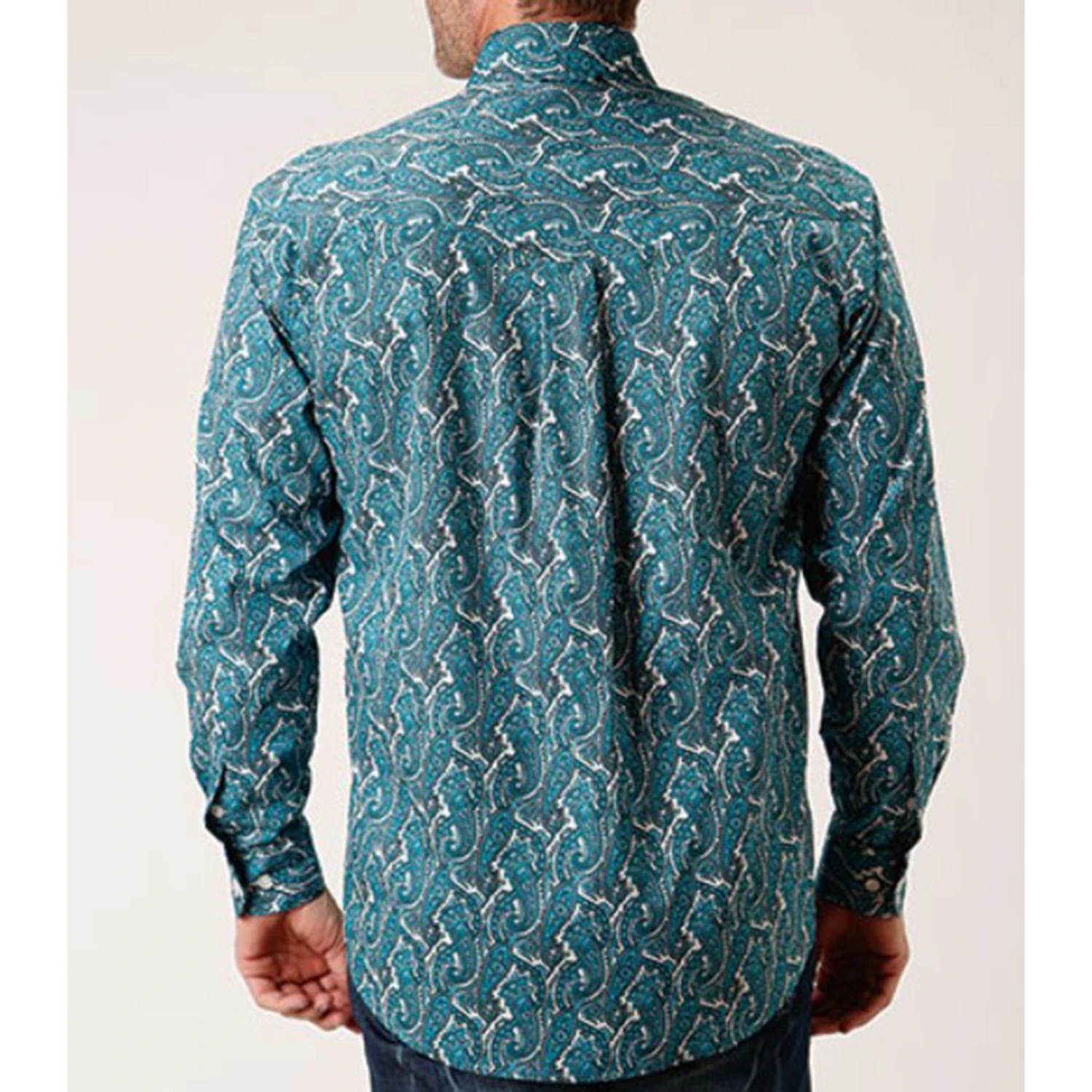 This long-sleeved classic paisley men’s shirt from Roper features white buttons and the reliable style to go with any of your favorite jeans.