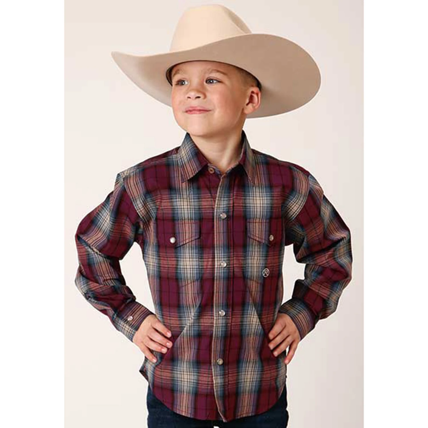 This fun wine plaid from CINCH is the perfect button down for your little cowboy!