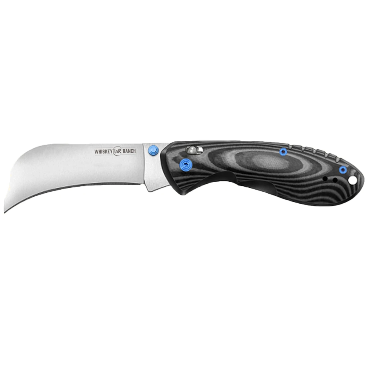 The Raven Catch Pinlock from Whiskey Bent features a 3.8″ G10 Handle with a Thumbstud Opening. This pillock knife also features a 2.91″ Satin Hawksbill Blade.