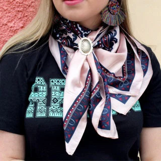 This wild rag has a traditional paisley look to it! The blush color is giving us summer rodeo vibes!