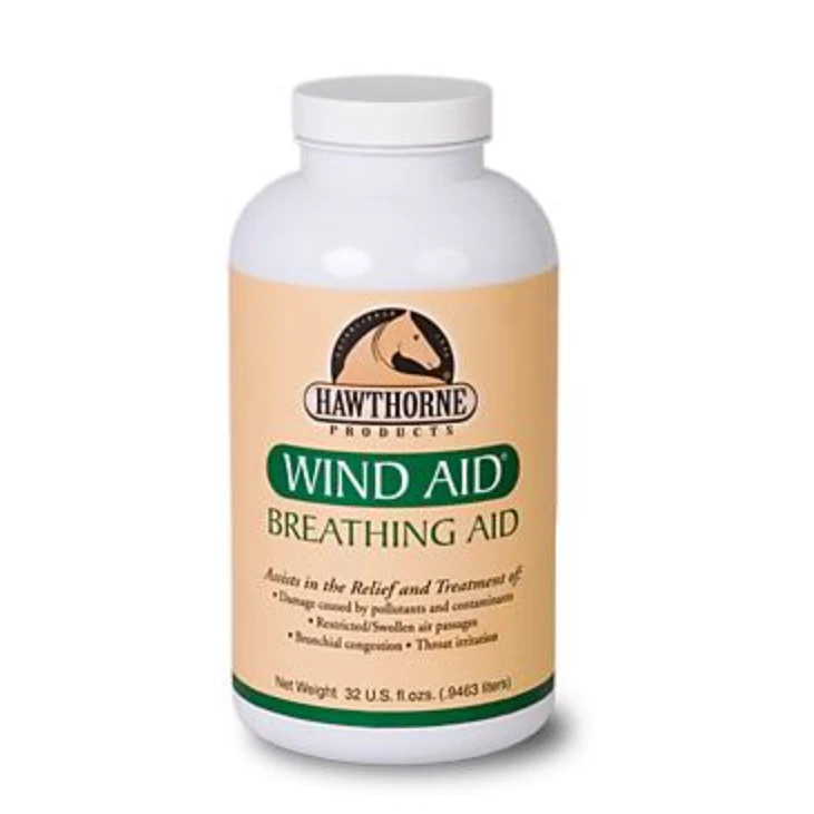Win Aid relieves coughs, allergies and minor breathing problems. Wind Aid offers temporary relief of equine bronchial congestion, minor throat irritation, allergies, and wind problems. Wind Aid is given orally to horses for minor or more severe wind problems including bronchial congestion and coughs. Use Wind Aid when your horse has seasonal allergies, respiratory track problems, or coughs.Â