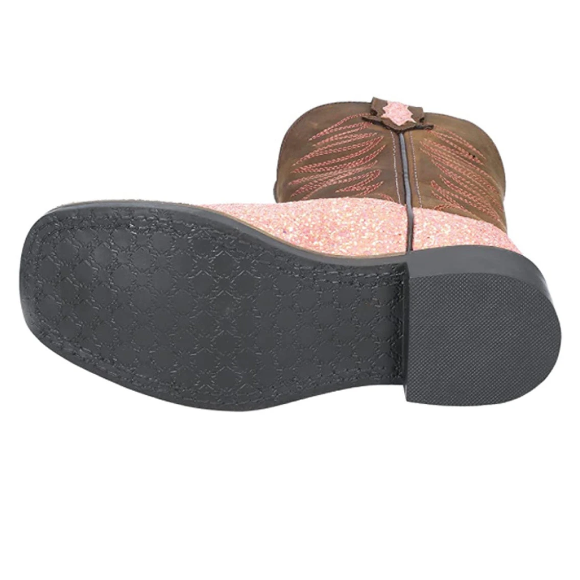 Perfect for any cowgirl that loves things that sparkle. These boots are made of genuine leather and man-made materials with a pastel glitter accent, Each pair comes with a cushioned insole for all-day wear.Â